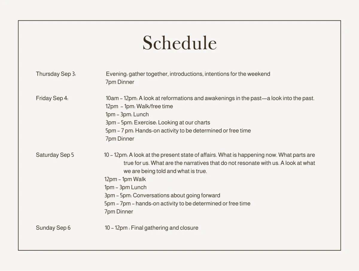Now that we are here in 2026, it seems like there is so much to digest, so much to talk about, and so much to presence. We will explore history as a context, be in the present moment in a beautiful place in the countryside, and contemplate the future.